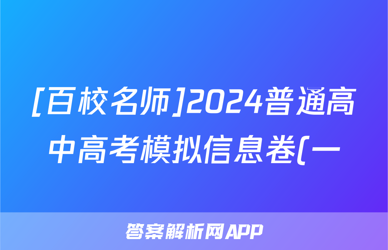 [百校名师]2024普通高中高考模拟信息卷(一)1语文X答案正在持续更新,本期2024衡中同卷单元卷答案网为大家整理了相关试题及答案,供大家查缺补漏,高效提升成绩。