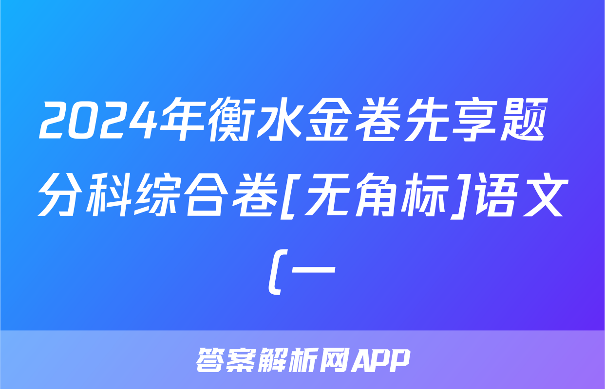 2024年衡水金卷先享题 分科综合卷[无角标]语文(一)1答案正在持续更新,本期2024衡中同卷单元卷答案网为大家整理了相关试题及答案,供大家查缺补漏,高效提升成绩。