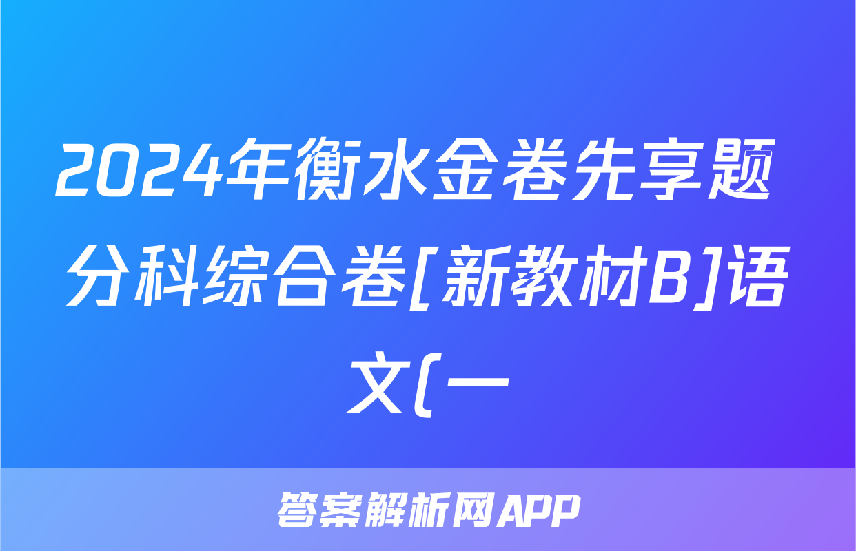 2024年衡水金卷先享题 分科综合卷[新教材B]语文(一)1答案正在持续更新,本期2024衡中同卷单元卷答案网为大家整理了相关试题及答案,供大家查缺补漏,高效提升成绩。
