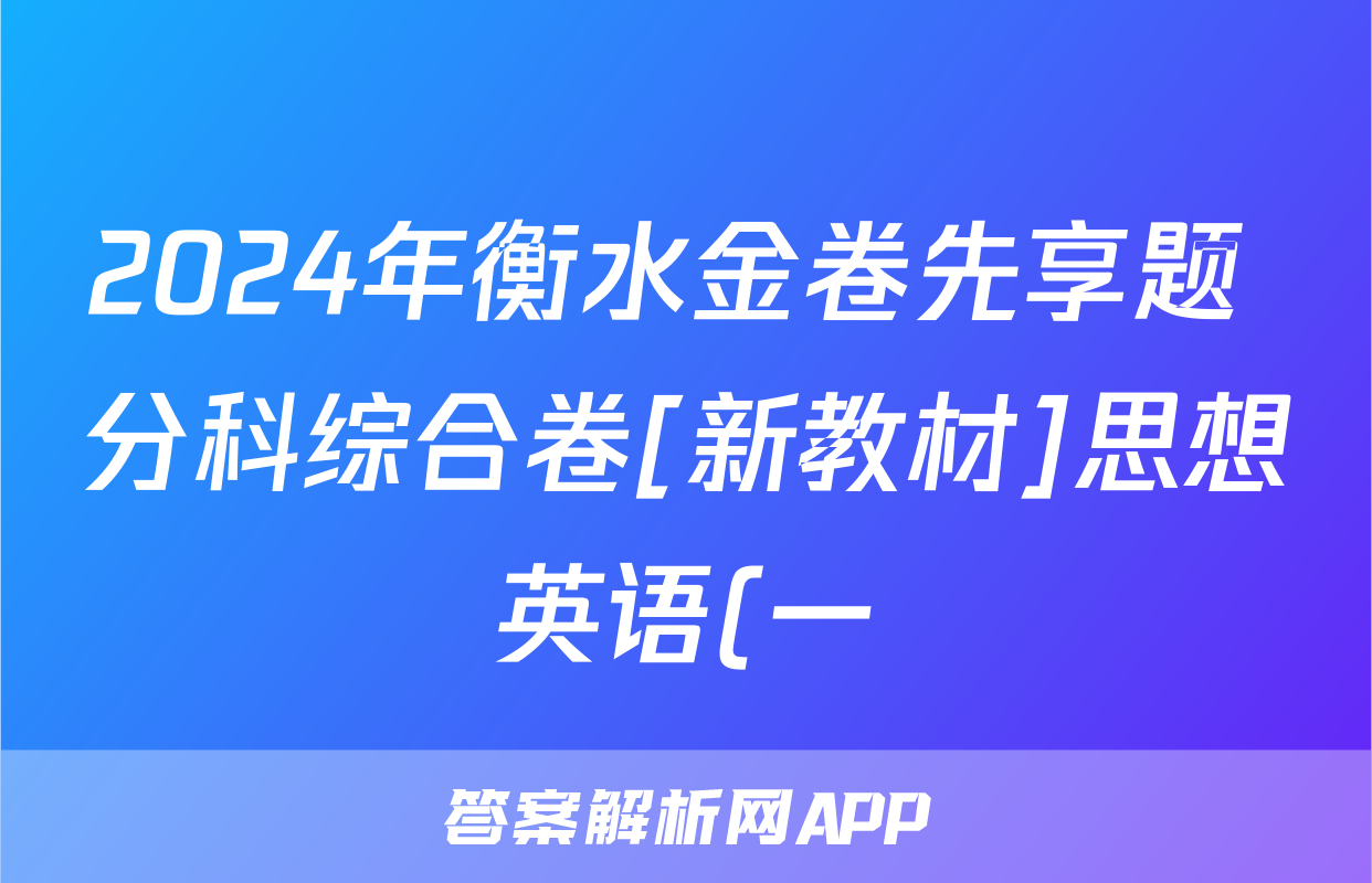 2024年衡水金卷先享题 分科综合卷[新教材]思想英语(一)1试题正在持续更新,本期2024衡中同卷单元卷答案网为大家整理了相关试题及答案,供大家查缺补漏,高效提升成绩。