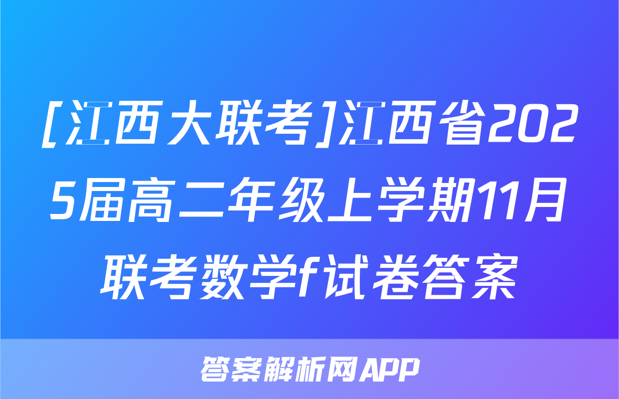 [江西大联考]江西省2025届高二年级上学期11月联考数学f试卷答案正在持续更新,本期2024衡中同卷单元卷答案网为大家整理了相关试题及答案,供大家查缺补漏,高效提升成绩。