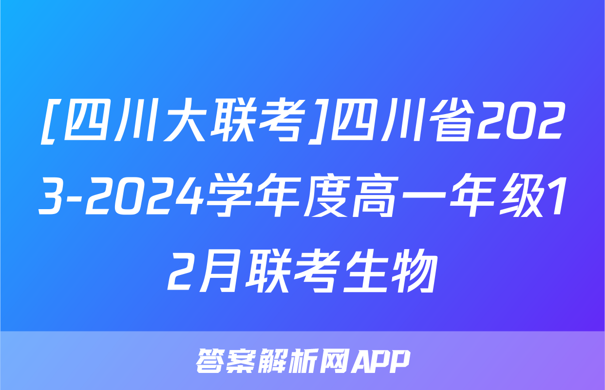 [四川大联考]四川省2023-2024学年度高一年级12月联考生物
