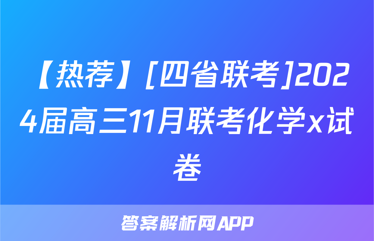 【热荐】[四省联考]2024届高三11月联考化学x试卷