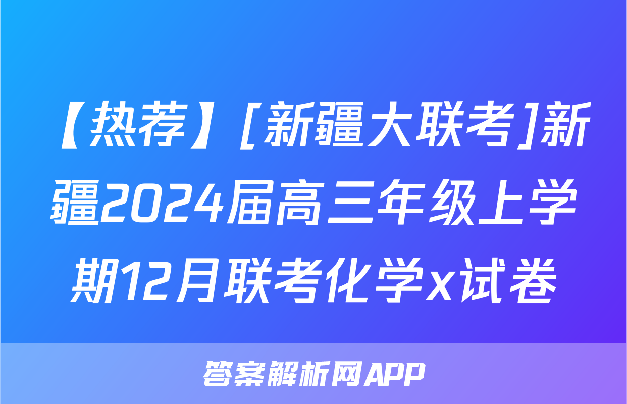 【热荐】[新疆大联考]新疆2024届高三年级上学期12月联考化学x试卷