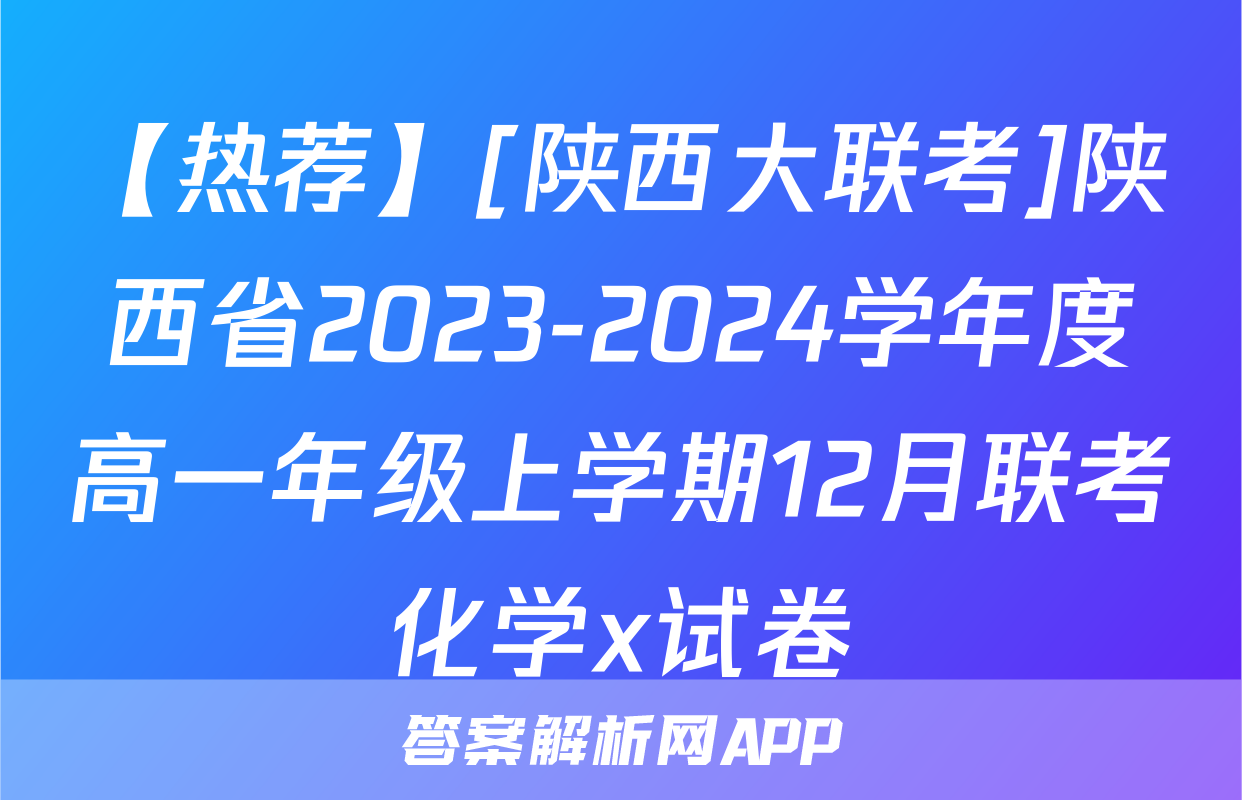 【热荐】[陕西大联考]陕西省2023-2024学年度高一年级上学期12月联考化学x试卷