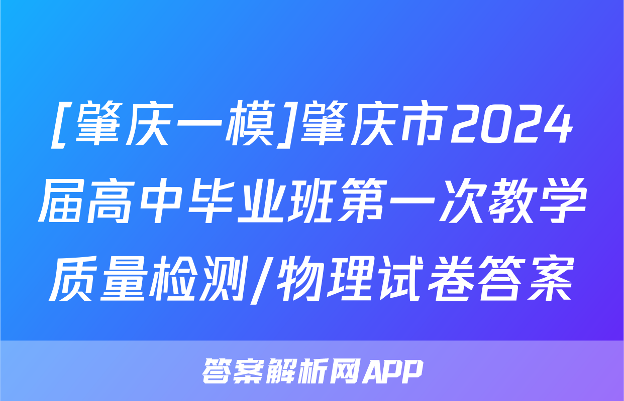 [肇庆一模]肇庆市2024届高中毕业班第一次教学质量检测/物理试卷答案