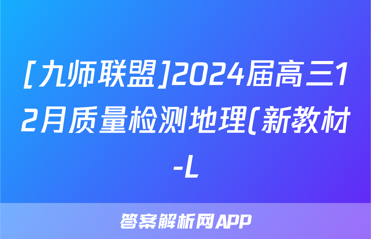 1、九师联盟 2024届高三12月质量检测地理(新教材-L)答案