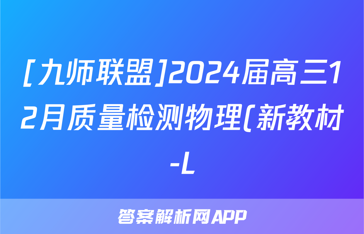 1、九师联盟 2024届高三12月质量检测物理(新教材-L)试题