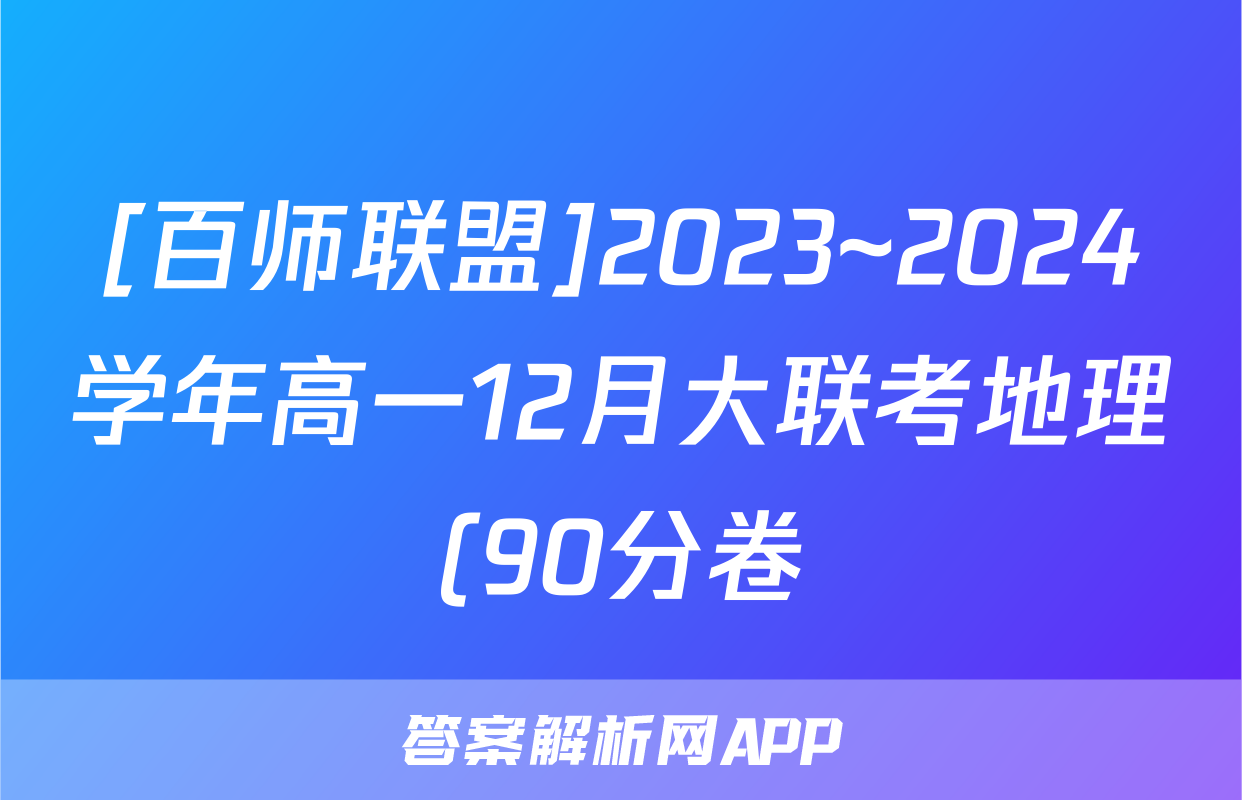 [百师联盟]2023~2024学年高一12月大联考地理(90分卷)答案
