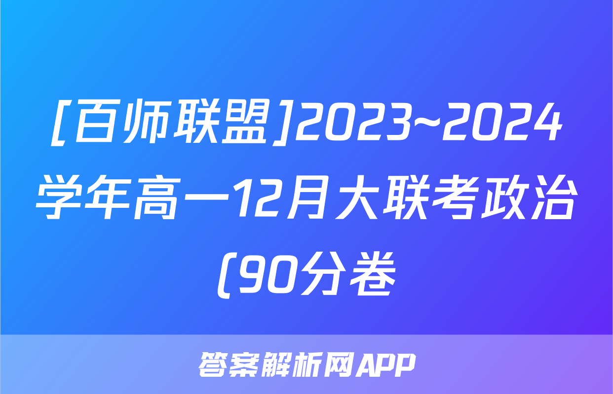 [百师联盟]2023~2024学年高一12月大联考政治(90分卷)试题