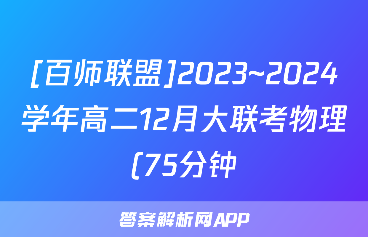 [百师联盟]2023~2024学年高二12月大联考物理(75分钟)答案