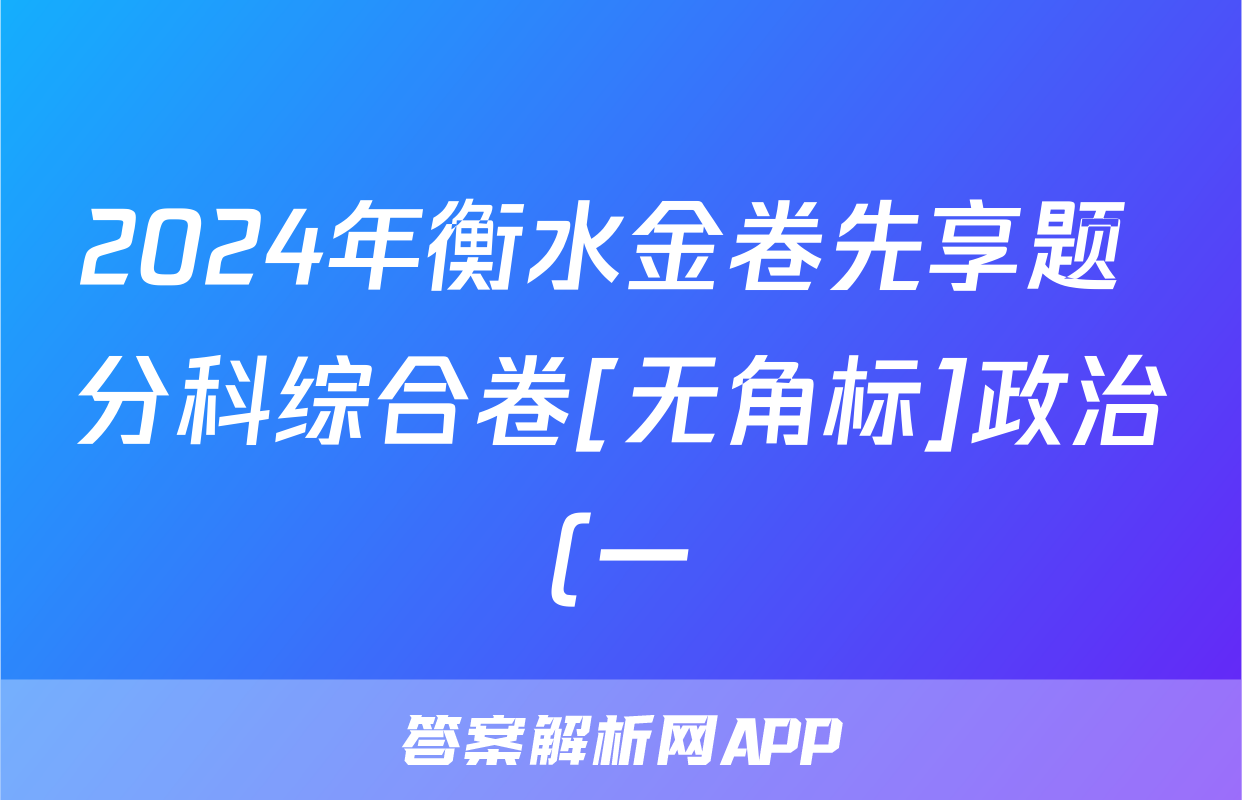 1、2024衡水金卷先享题答案政治
