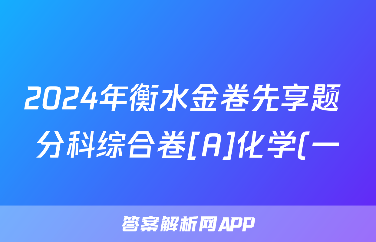 2024年衡水金卷先享题 分科综合卷[A]化学(一)1答案