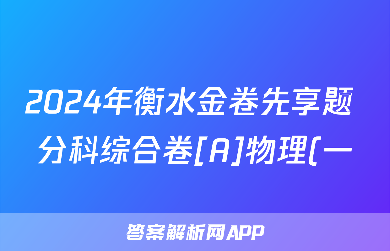 2024年衡水金卷先享题 分科综合卷[A]物理(一)1答案
