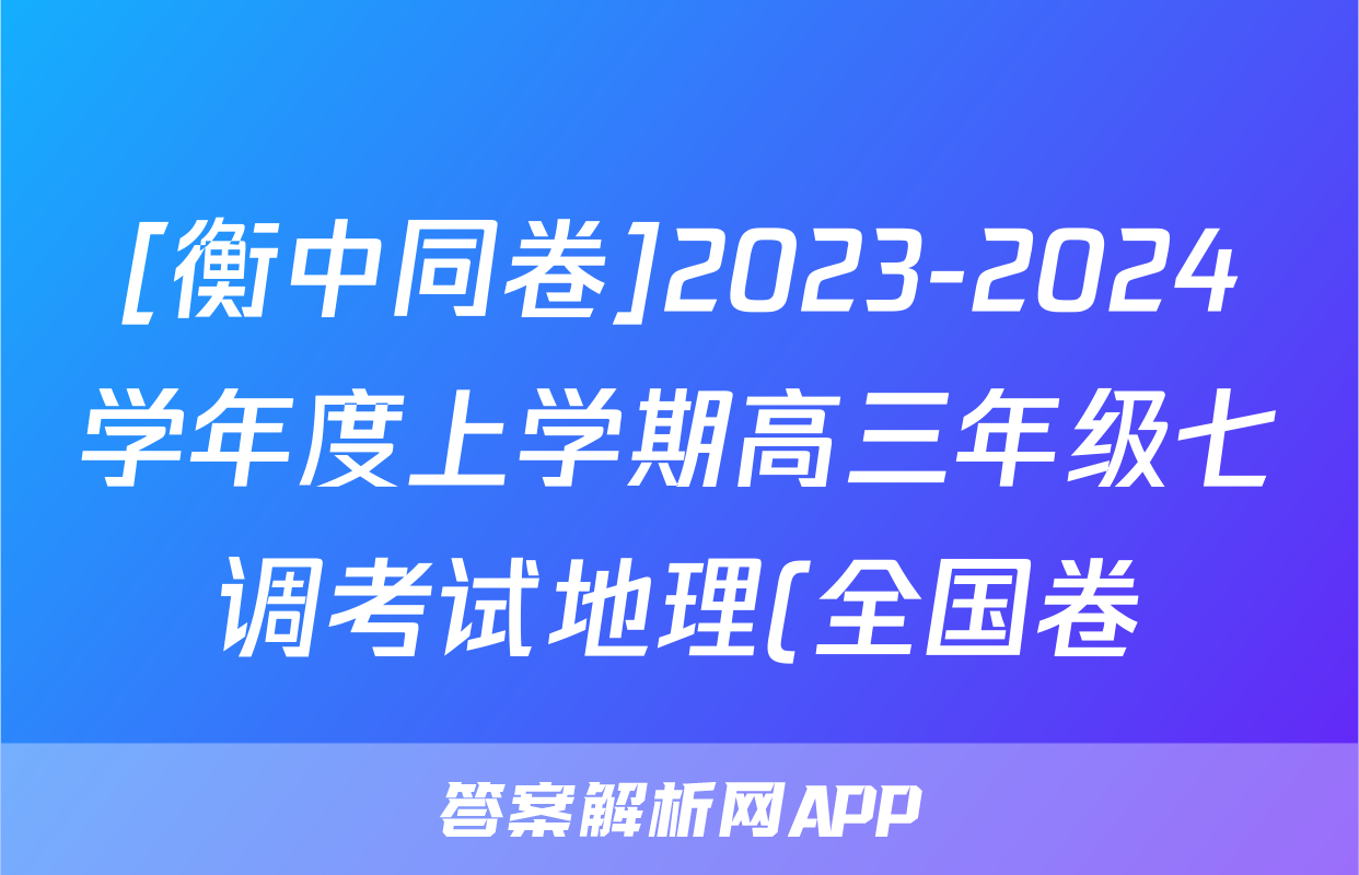 [衡中同卷]2023-2024学年度上学期高三年级七调考试地理(全国卷)答案