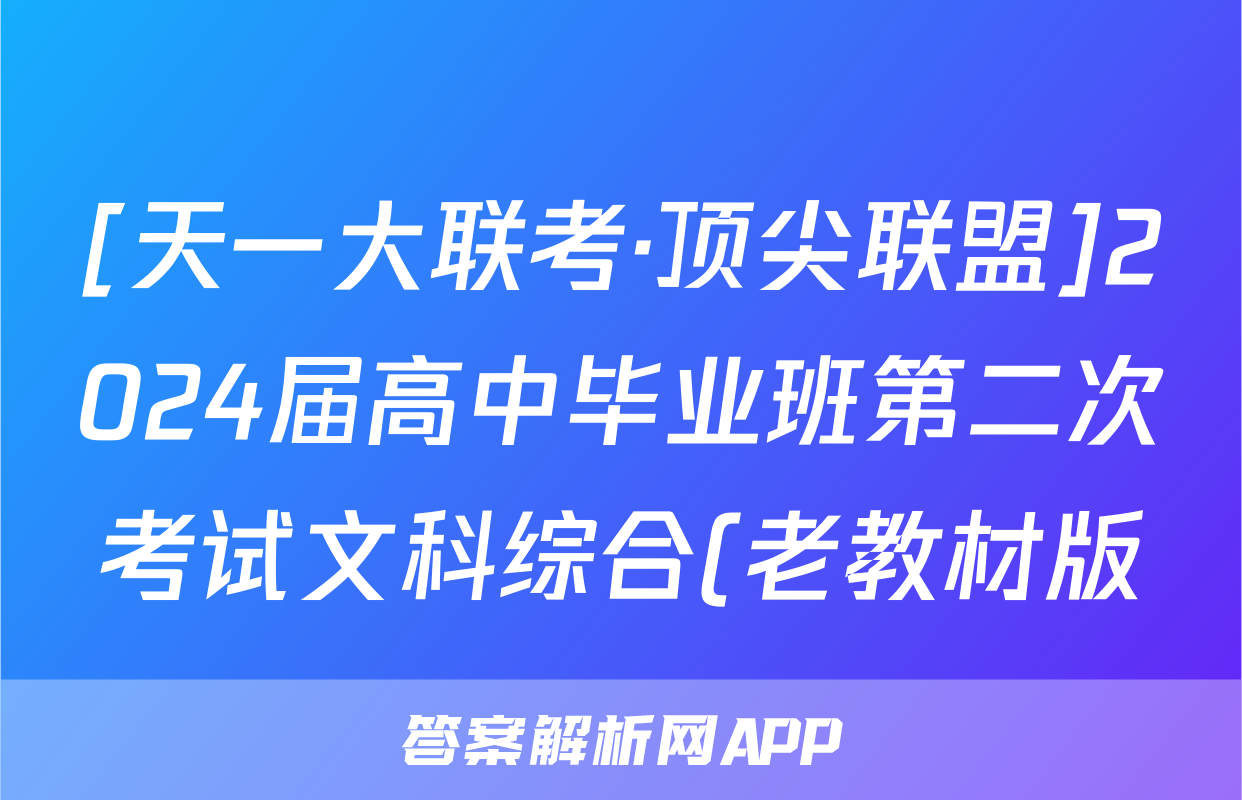 [天一大联考·顶尖联盟]2024届高中毕业班第二次考试文科综合(老教材版)答案正在持续更新,本期2024衡中同卷单元卷答案网为大家整理了相关试题及答案,供大家查缺补漏,高效提升成绩。
