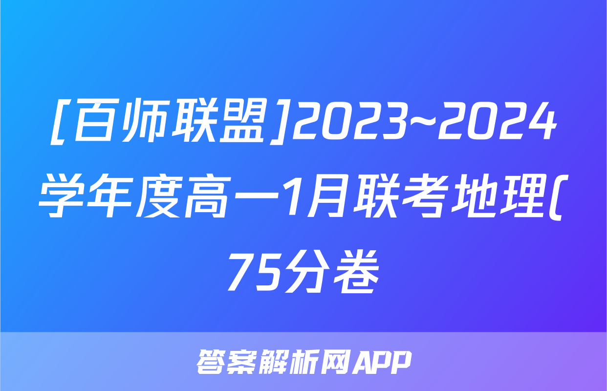 [百师联盟]2023~2024学年度高一1月联考地理(75分卷)试题