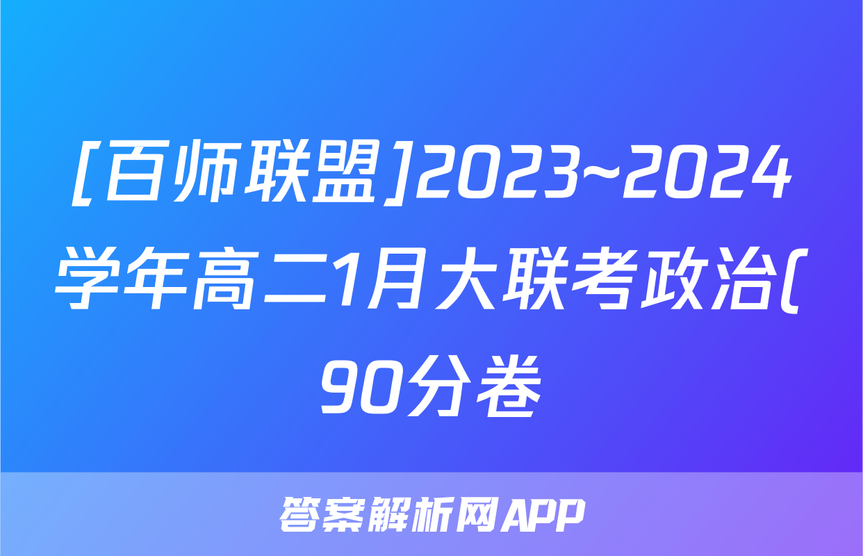 [百师联盟]2023~2024学年高二1月大联考政治(90分卷)答案