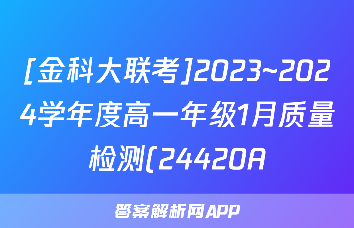 1、金科大联考·2023~2024学年度高一年级12月质量检测(24308A)