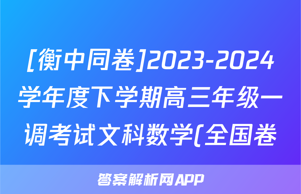 [衡中同卷]2023-2024学年度下学期高三年级一调考试文科数学(全国卷)答案