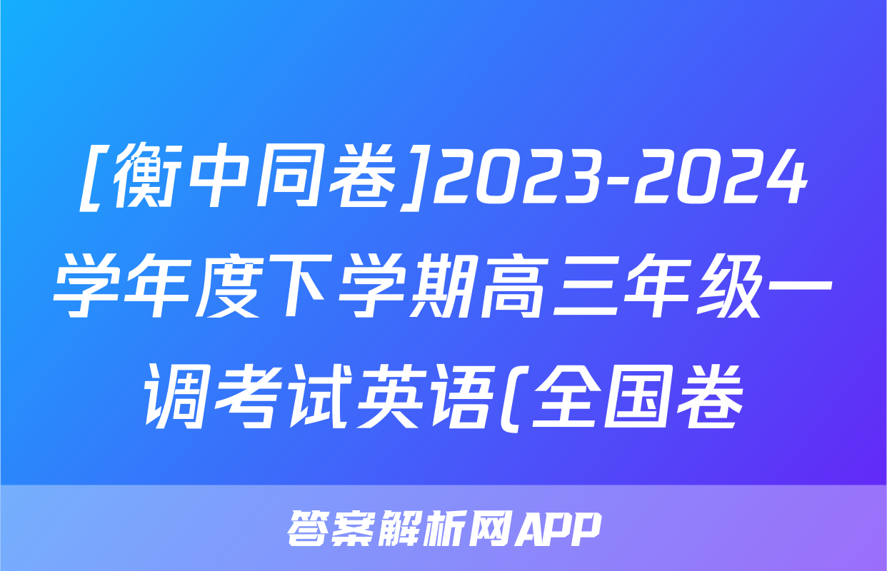 [衡中同卷]2023-2024学年度下学期高三年级一调考试英语(全国卷)答案