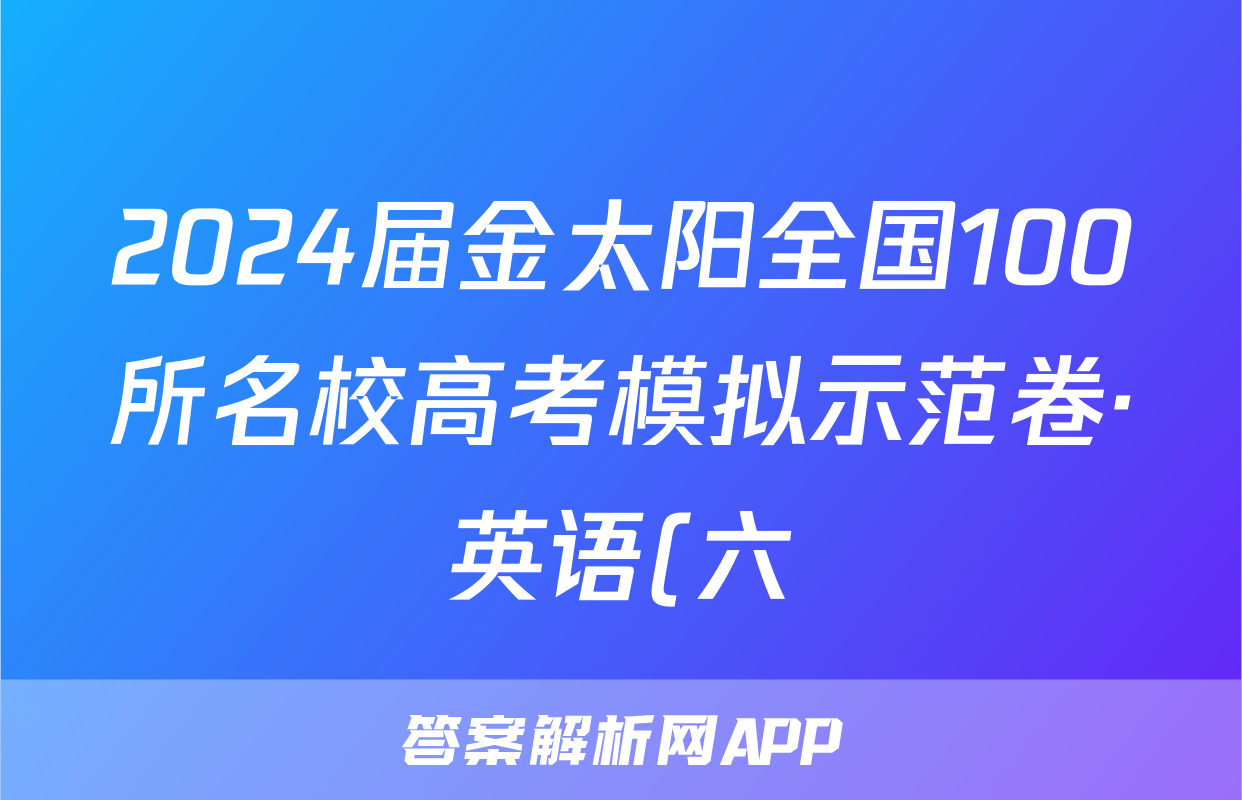 2024届金太阳全国100所名校高考模拟示范卷·英语(六)6[24·ZX·MNJ·英语·Y]试题