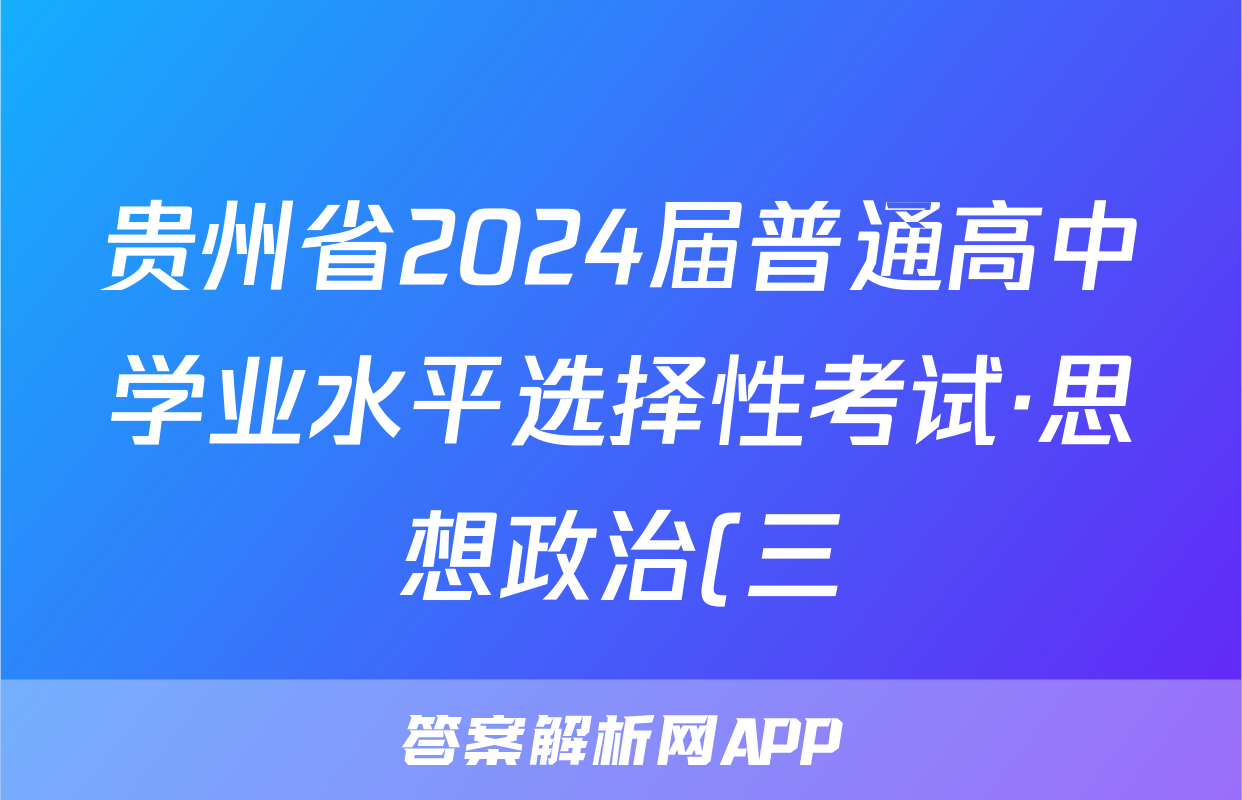 贵州省2024届普通高中学业水平选择性考试·思想政治(三)3[24·(新高考)ZX·MNJ·思想政治·GZ]答案