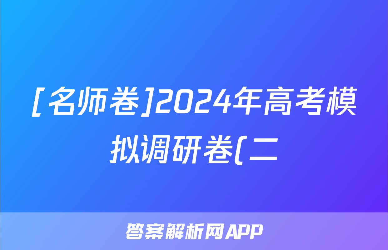 [名师卷]2024年高考模拟调研卷(二)2生物(新教材▣)答案