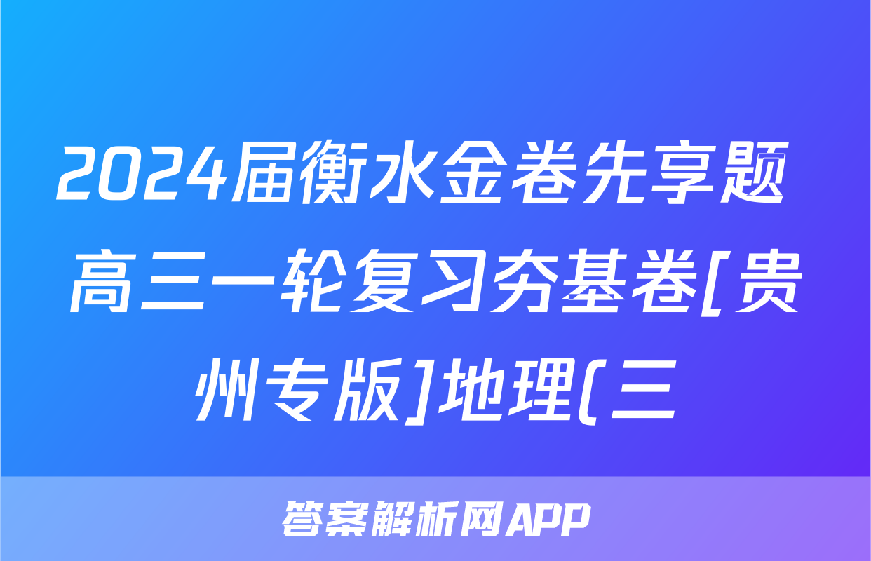 2024届衡水金卷先享题 高三一轮复习夯基卷[贵州专版]地理(三)3试题