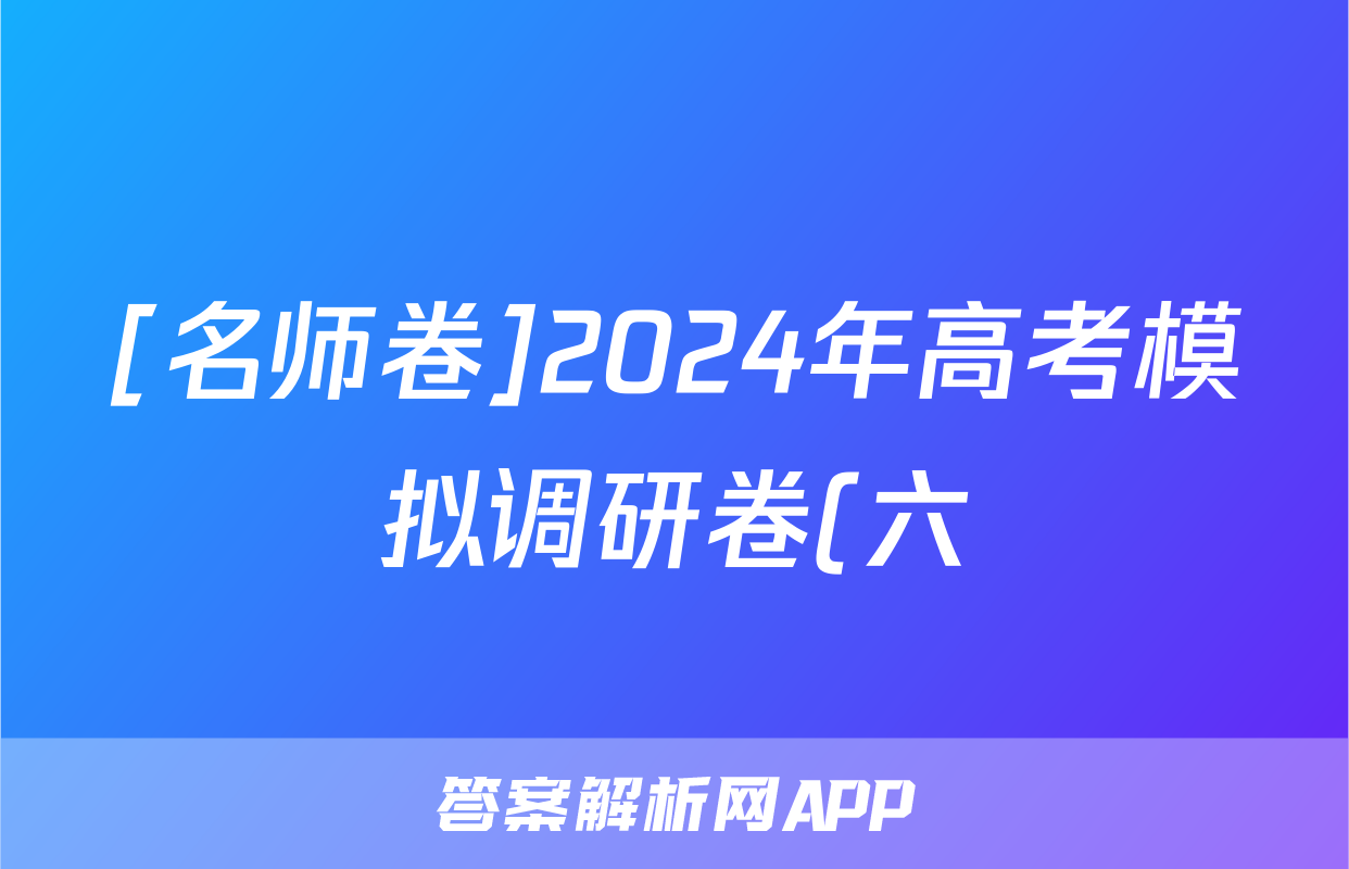 [名师卷]2024年高考模拟调研卷(六)6理科综合(老高考◆)答案