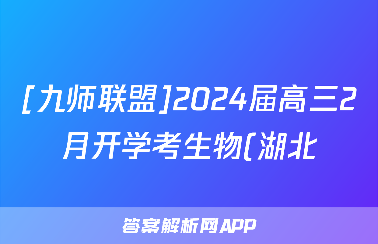 [九师联盟]2024届高三2月开学考生物(湖北)答案
