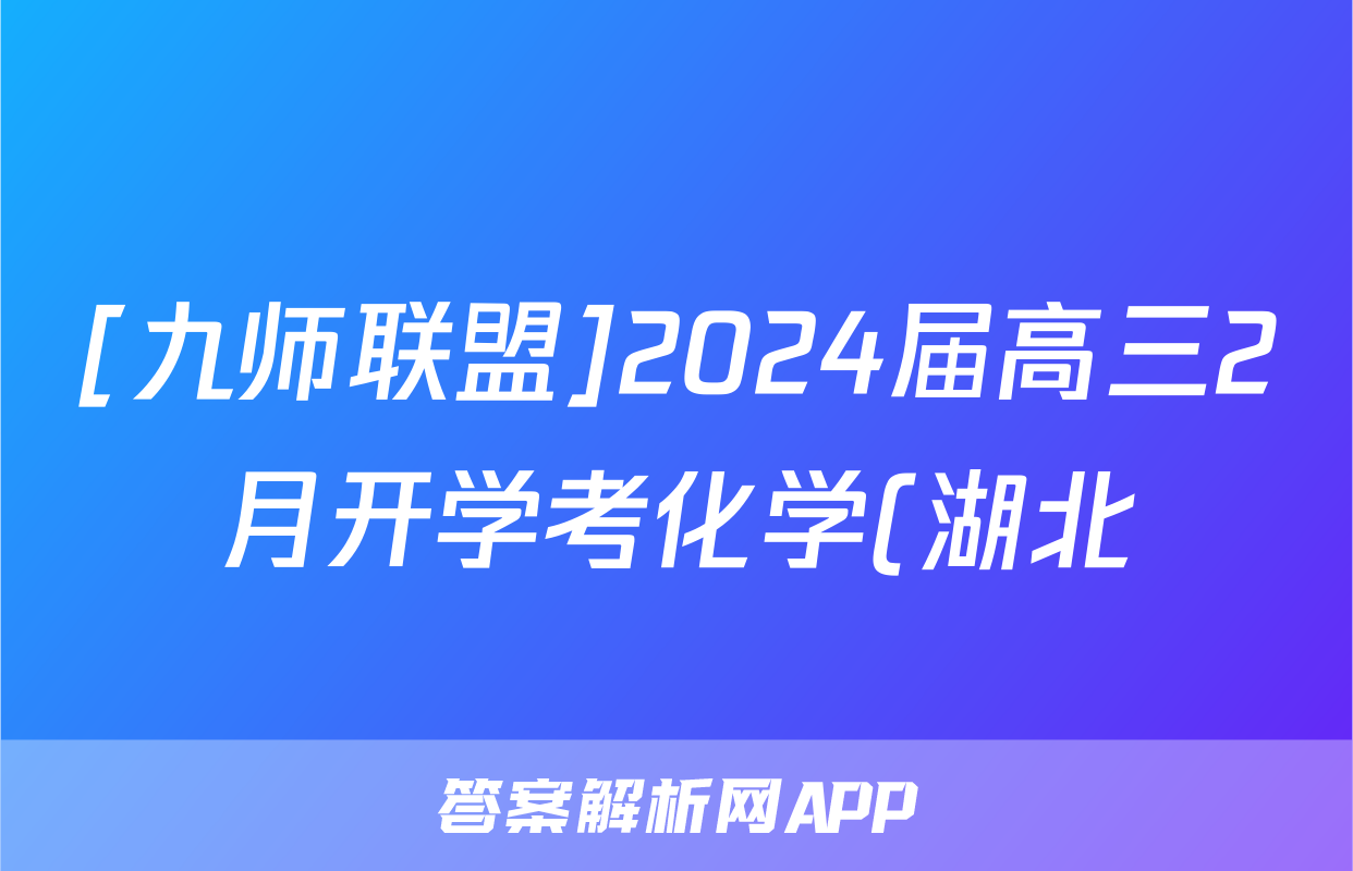 [九师联盟]2024届高三2月开学考化学(湖北)试题