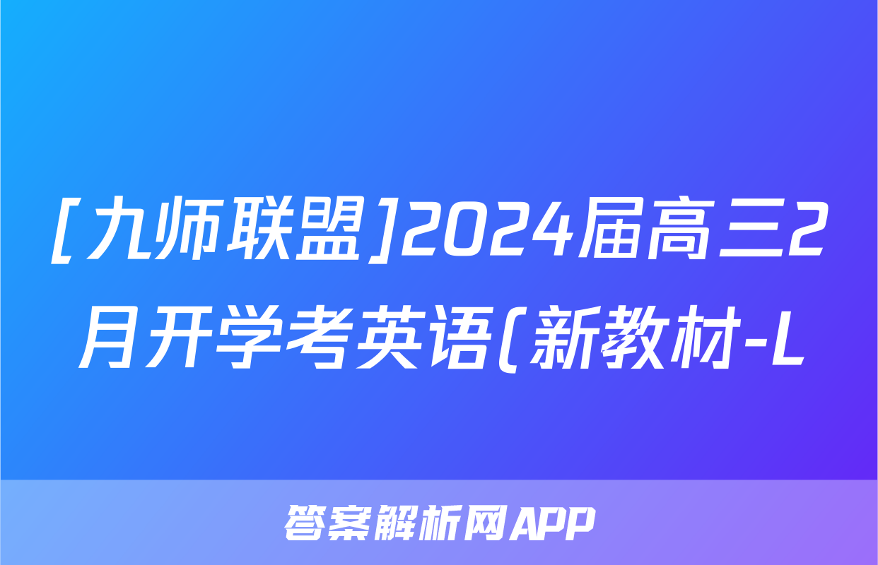 [九师联盟]2024届高三2月开学考英语(新教材-L)试题