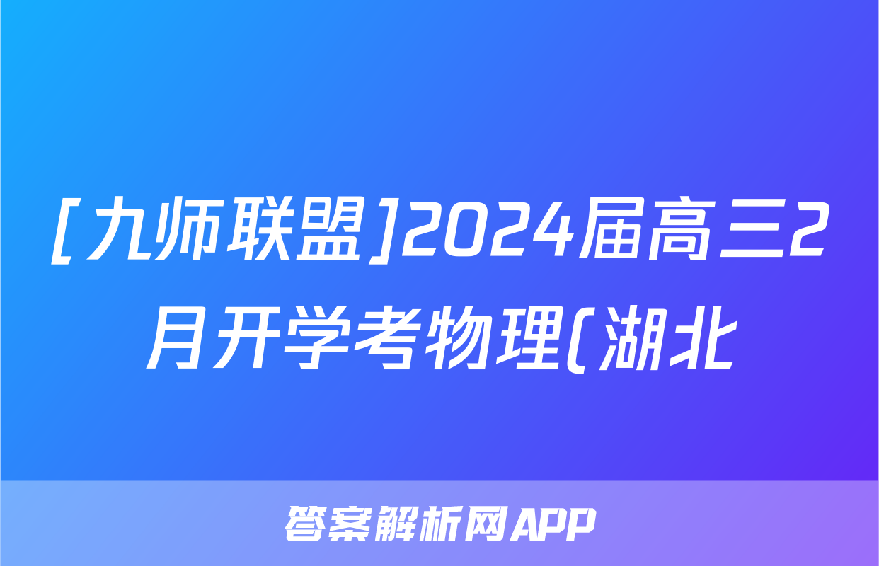[九师联盟]2024届高三2月开学考物理(湖北)答案