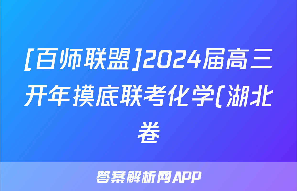 [百师联盟]2024届高三开年摸底联考化学(湖北卷)答案