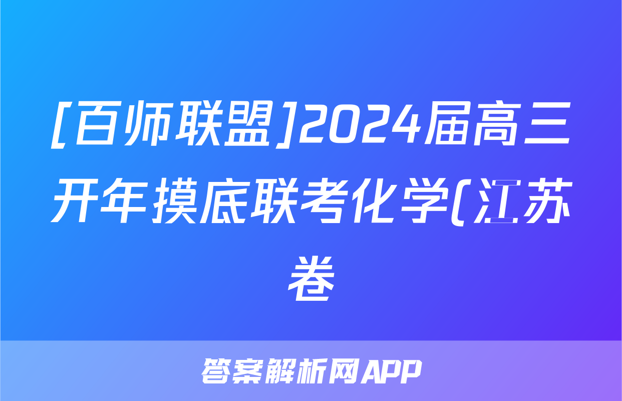 [百师联盟]2024届高三开年摸底联考化学(江苏卷)答案