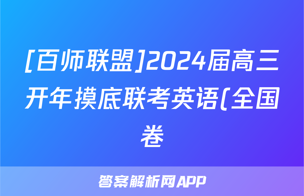 [百师联盟]2024届高三开年摸底联考英语(全国卷)试题