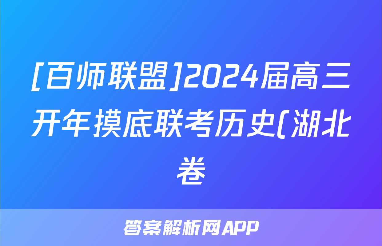 [百师联盟]2024届高三开年摸底联考历史(湖北卷)试题