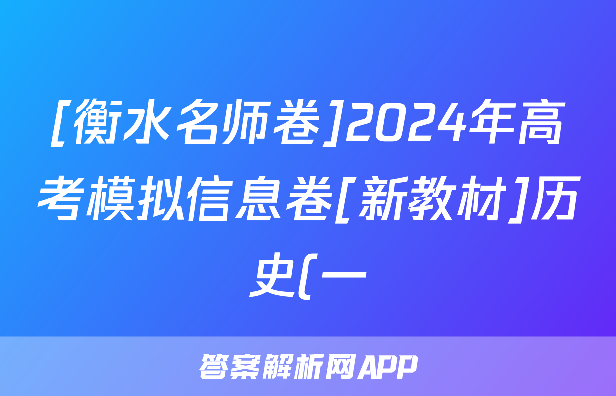 [衡水名师卷]2024年高考模拟信息卷[新教材]历史(一)1试题