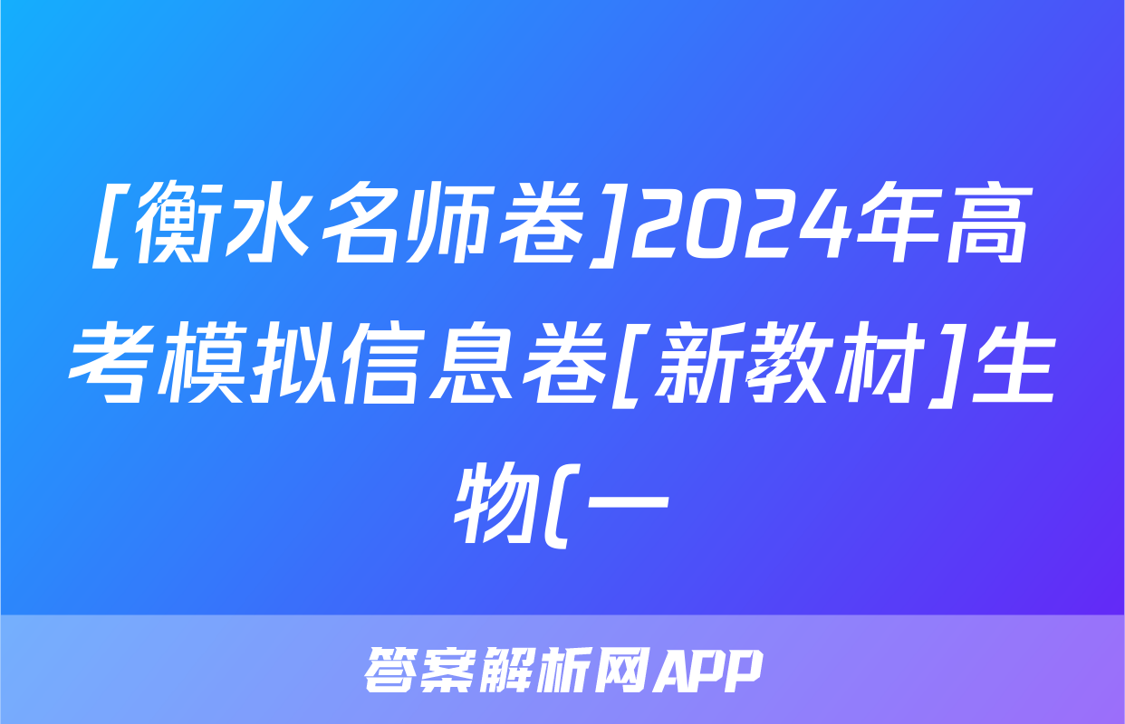 [衡水名师卷]2024年高考模拟信息卷[新教材]生物(一)1试题