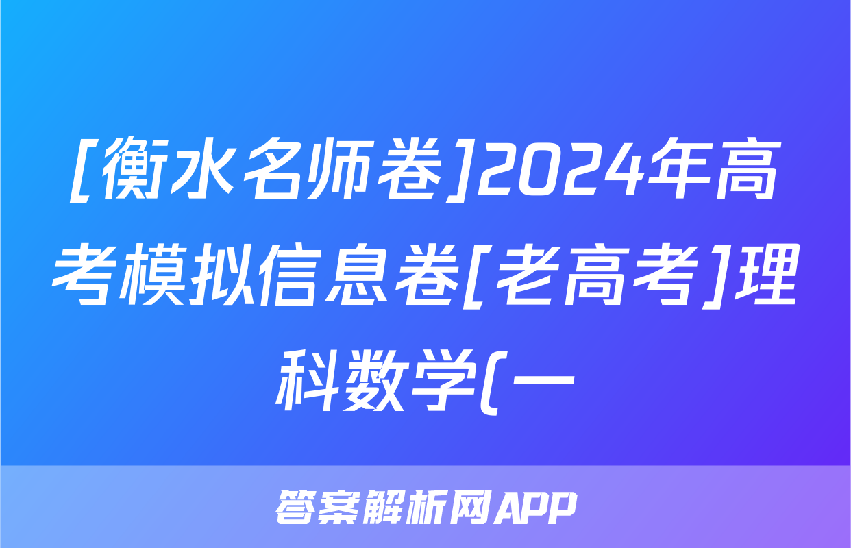 [衡水名师卷]2024年高考模拟信息卷[老高考]理科数学(一)1答案