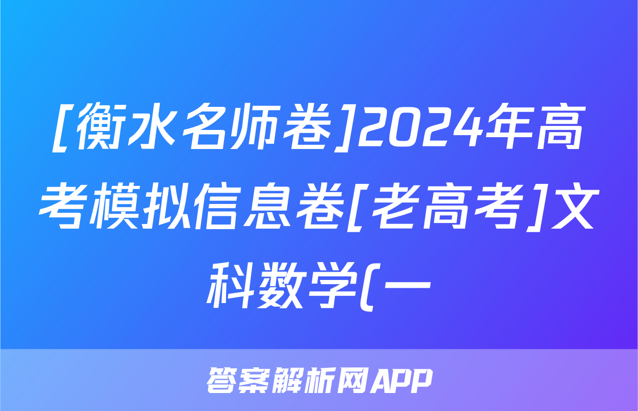 [衡水名师卷]2024年高考模拟信息卷[老高考]文科数学(一)1答案
