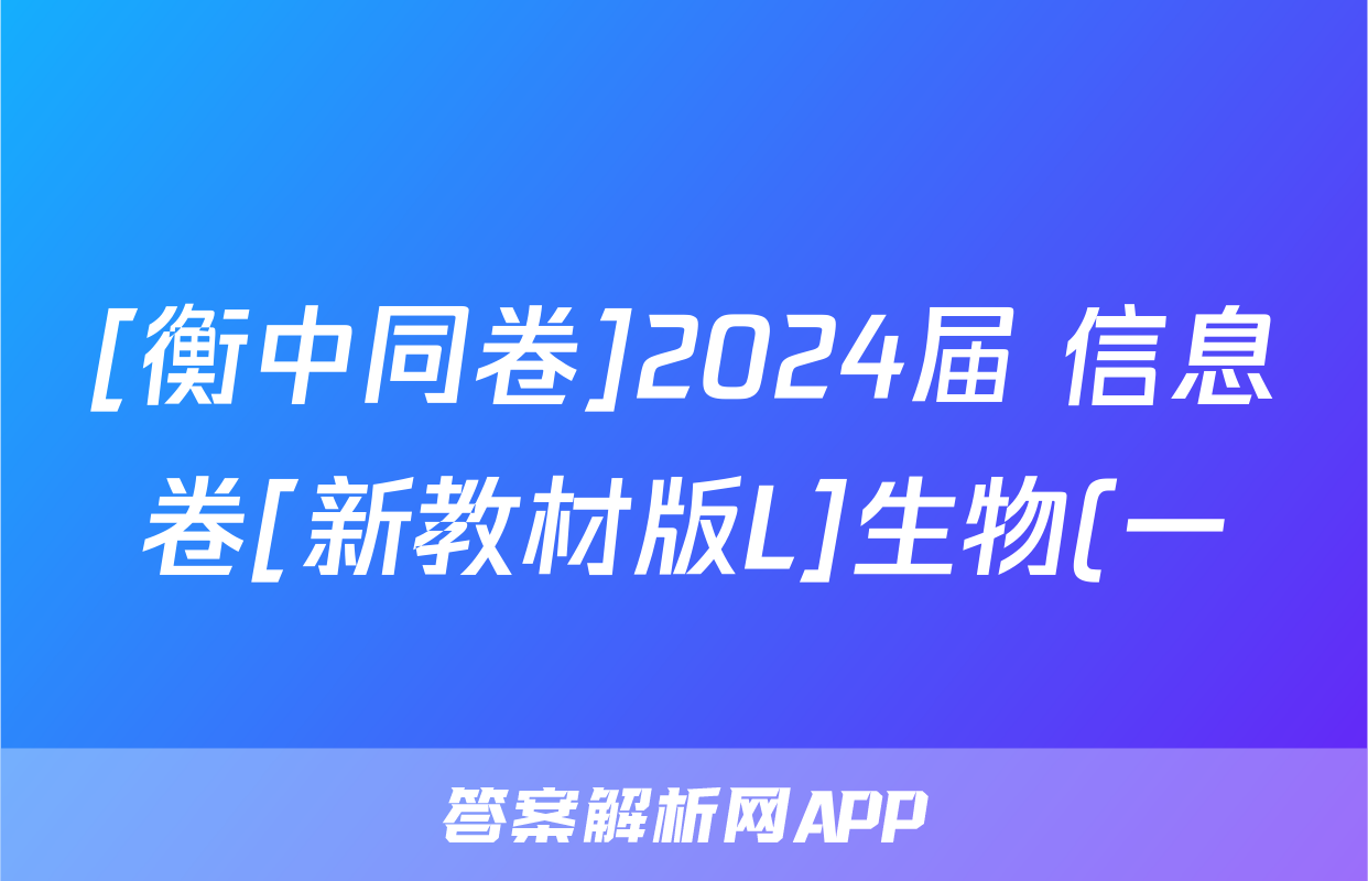 1、2024届衡中同卷 调研卷 新教材版L 生物(一)1试题