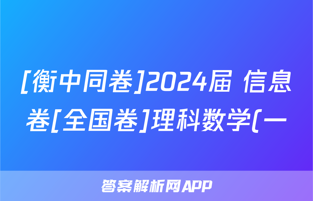 [衡中同卷]2024届 信息卷[全国卷]理科数学(一)1答案
