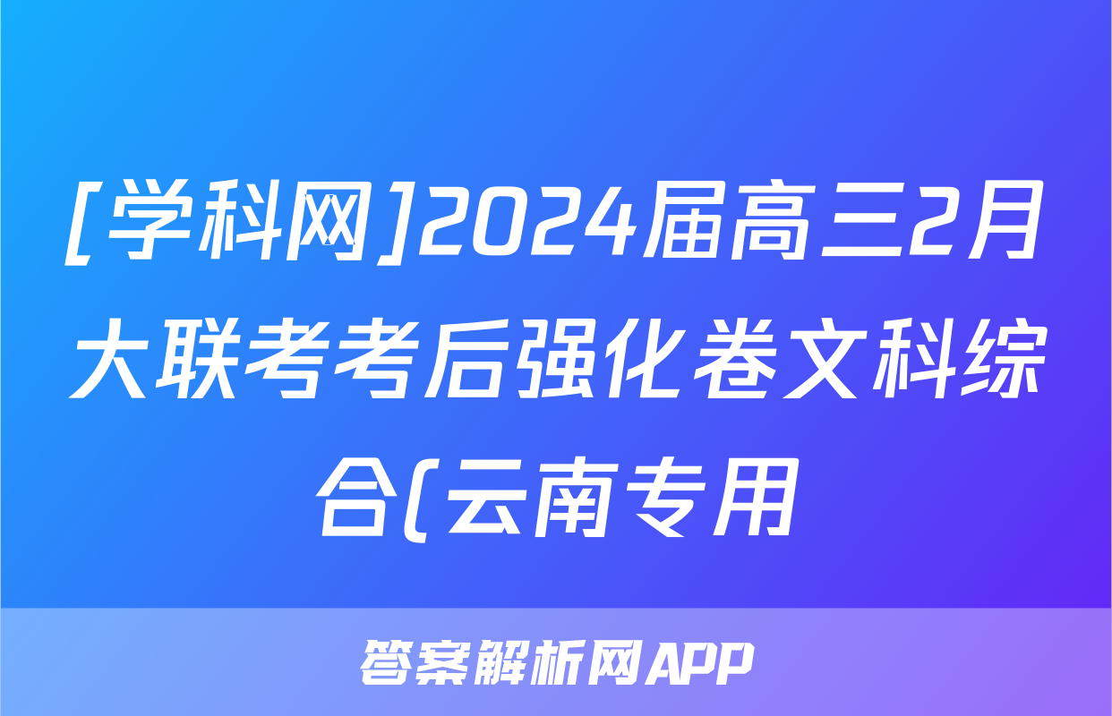 [学科网]2024届高三2月大联考考后强化卷文科综合(云南专用)试题