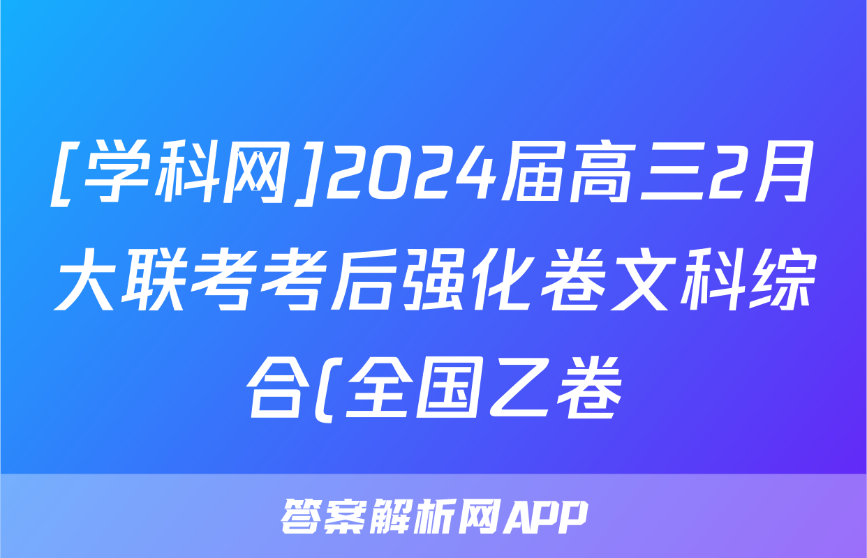 [学科网]2024届高三2月大联考考后强化卷文科综合(全国乙卷)答案