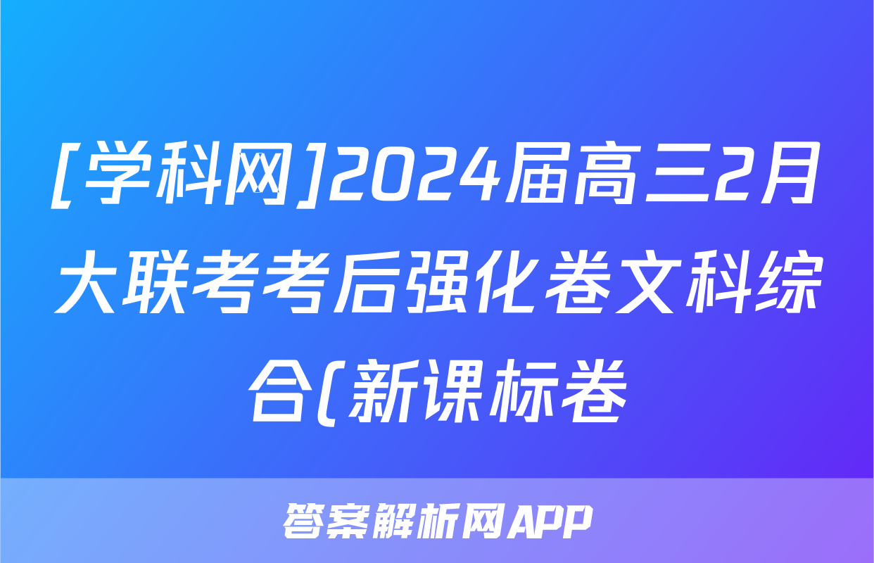1、[学科网]2024届高三2月大联考考后强化卷文科综合(新课标卷)(新疆专用)答案