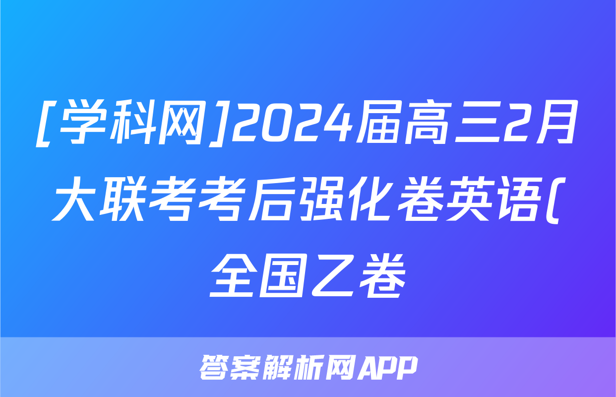 [学科网]2024届高三2月大联考考后强化卷英语(全国乙卷)答案正在持续更新,本期2024衡中同卷单元卷答案网为大家整理了相关试题及答案,供大家查缺补漏,高效提升成绩。