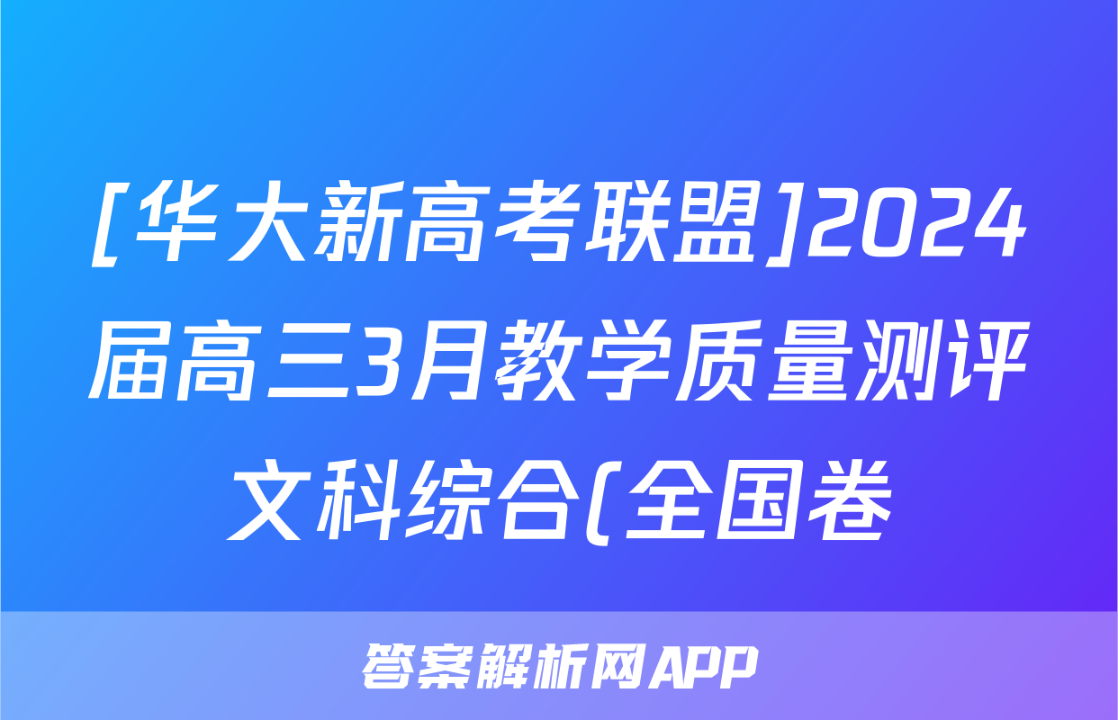 [华大新高考联盟]2024届高三3月教学质量测评文科综合(全国卷)试题