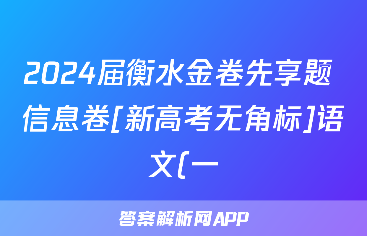 2024届衡水金卷先享题 信息卷[新高考无角标]语文(一)1答案